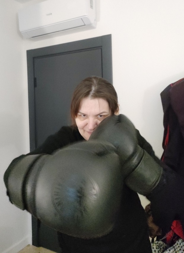 В боксёрских перчатках